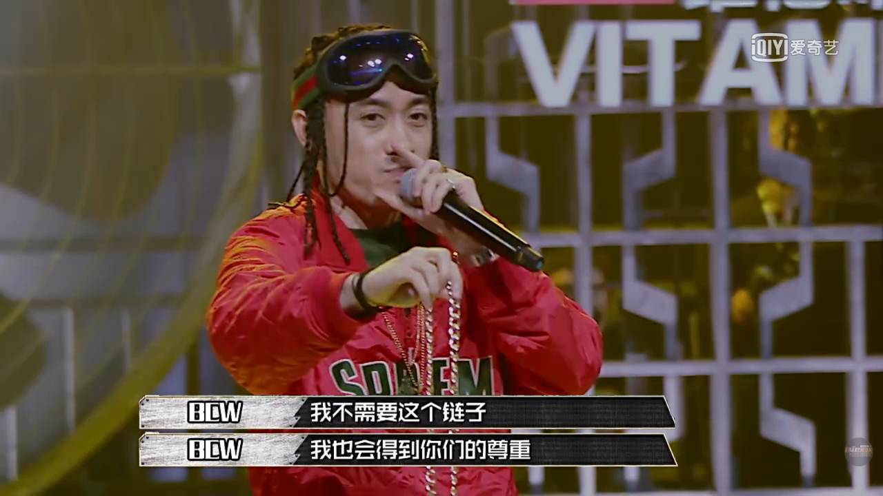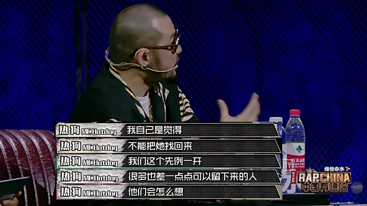显然,第一,ALROCCO的说唱水准是高水平的(本来在圈子就有一定名气),第二,哈二人组一直在称赞他的声音好听,节拍也无问题,但就是因为全英文而被淘汰,而且片段有提到他已经在努力学习中文了。