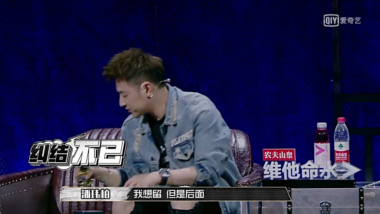 说完这句话,潘玮柏有些按捺不住略表尴尬(潘的心理变化是这样的:不是你们都FALL的吗,现在把责任推到我头上了,其实我本来是想留的,但又害怕你们说我不懂嘻哈……)
